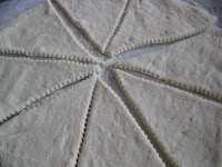 Intanto preparare il ripieno: lessare gli spinaci in pentola a pressione con poca acqua e sale (dieci minuti dal fischio). Io li ho tritati, ma la ricetta originale non lo prevede. Lessare le patate con poco sale per dieci minuti, tagliate a fettine sottili. Far soffriggere i porri e aggiungere gli spinaci. Sbattere le due uova nella padella con gli spinaci.